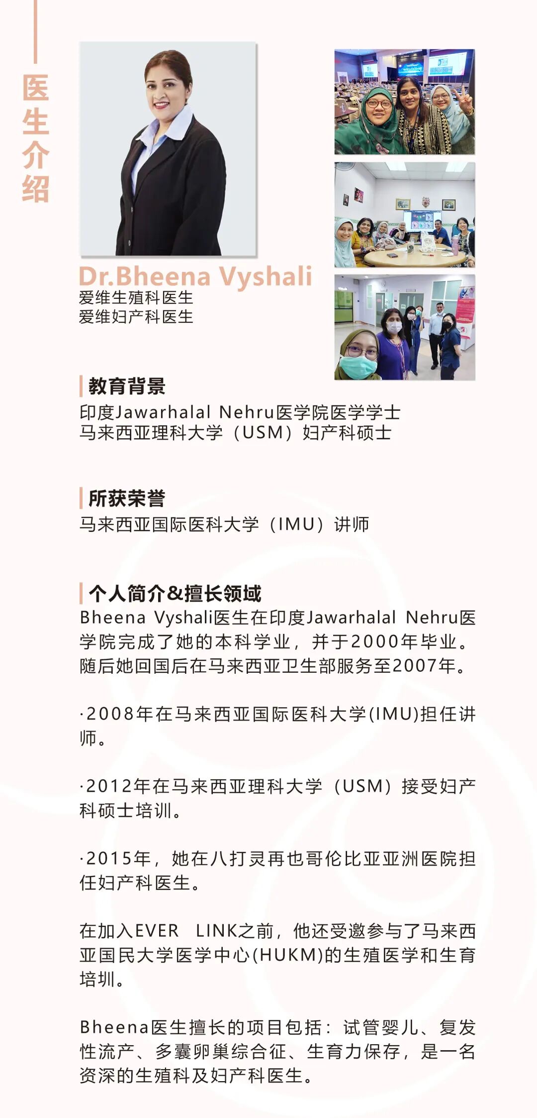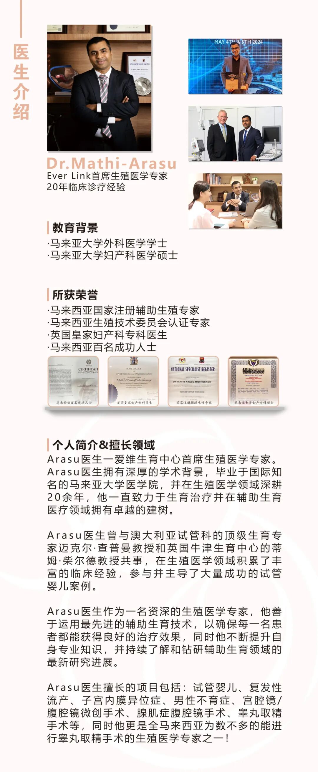 ● 爱维生育中心的专家团队在马来西亚生殖医学中心有20年的从业经验,高水平的诊疗技术,保证了中心试管的高成功率。